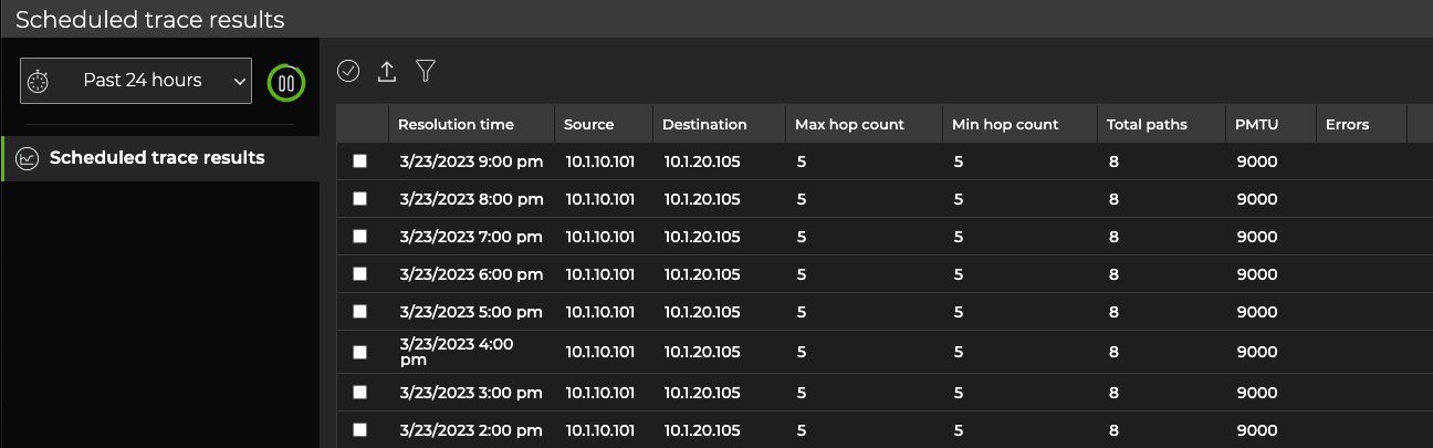 - Select the scheduled trace results you want to view. Above the table, select