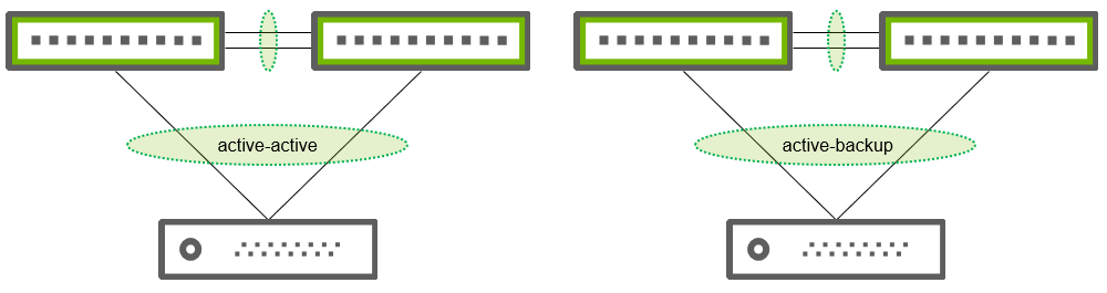 To achieve redundant top-of-rack deployment using MLAG, you must configure storage array NICs with active-active bonding. The examples below use the MLAG protocol set even for non-active-active bonds towards the ToR switches: