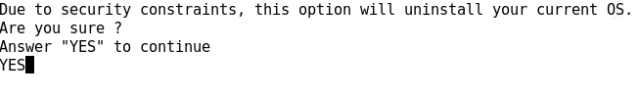 - To confirm that you want to uninstall the Onyx network operating system, type