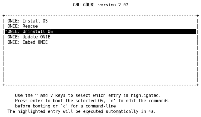 ONIE: Uninstall OSfrom the ONIE GRUB menu and pressEnter.